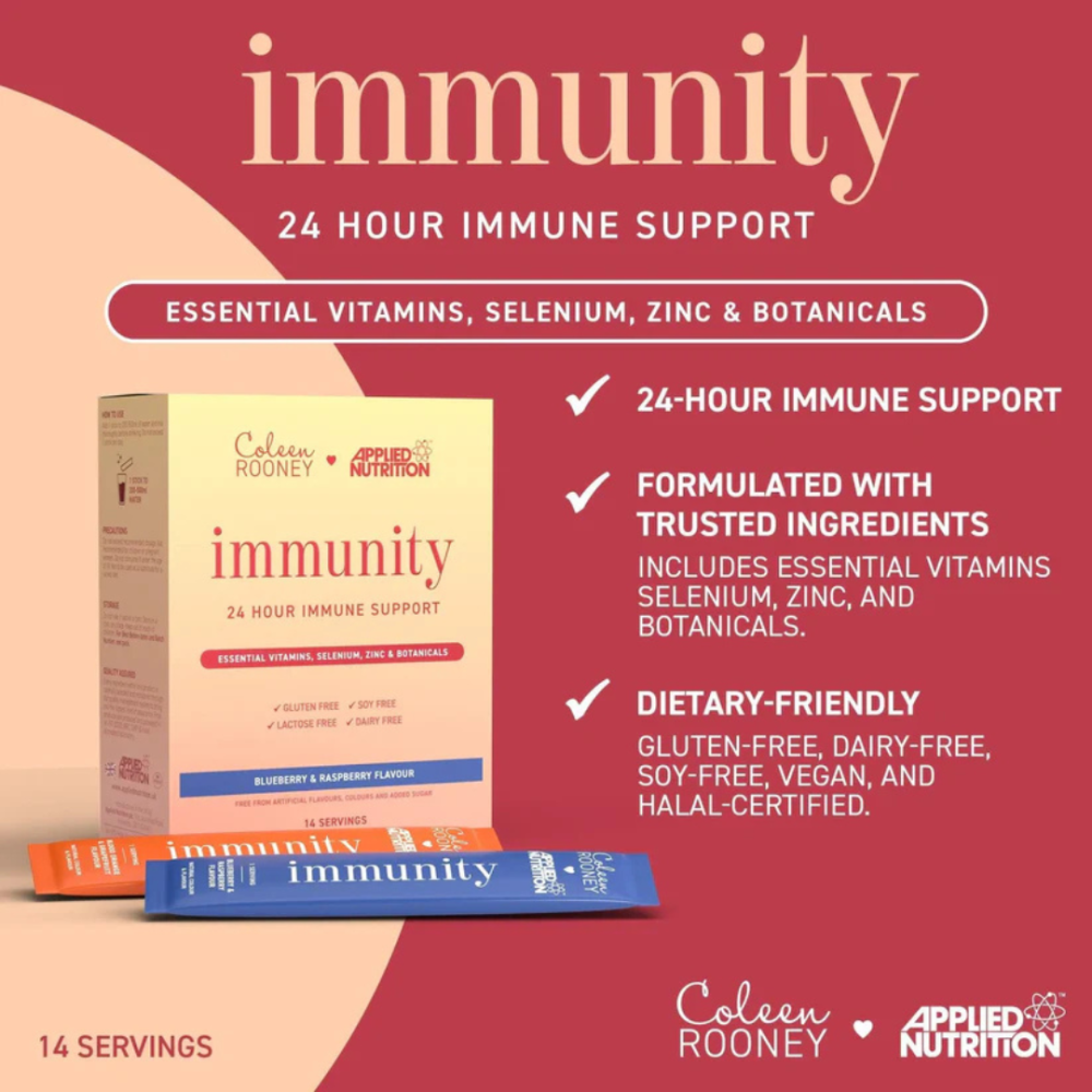 "Coleen's Immunity Powder" هو مكمل غذائي مصمم لدعم الجهاز المناعي. يأتي في عبوة تحتوي على 14 حصة (كيس)، كل كيس يمثل جرعة واحدة.