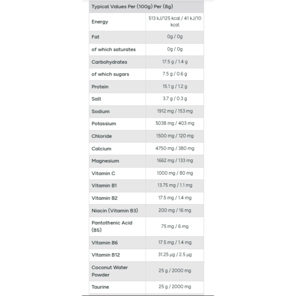 يُخلط مكيال واحد (8 جرام) مع 250 مل - 500 مل من الماء البارد أو مشروبك المفضل. يُحرك أو يُرج جيدًا. يمكن استخدامه أثناء أو بعد التمرين، في الطقس الحار، أثناء السفر الطويل، أو في أي وقت تكون هناك حاجة للترطيب.