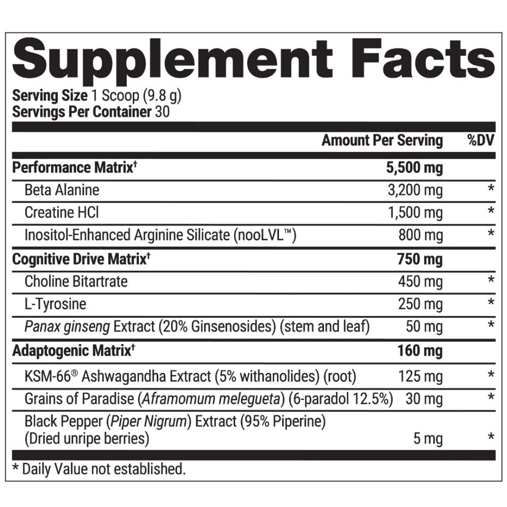 - التركيز الذهني: يحتوي على مكونات داعمة للتركيز مثل L-Tyrosine، مما يساعدك على البقاء متيقظاً ومركزاً على التمرين دون الشعور بالتوتر أو القلق الذي قد تسببه الجرعات العالية من المنبهات.